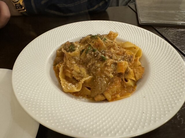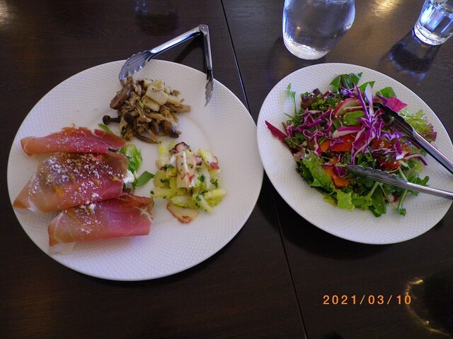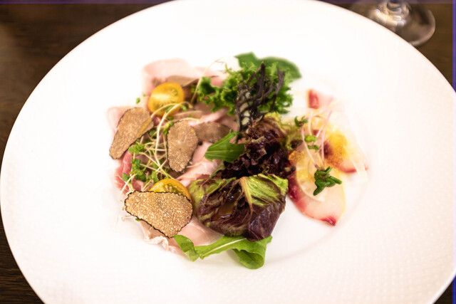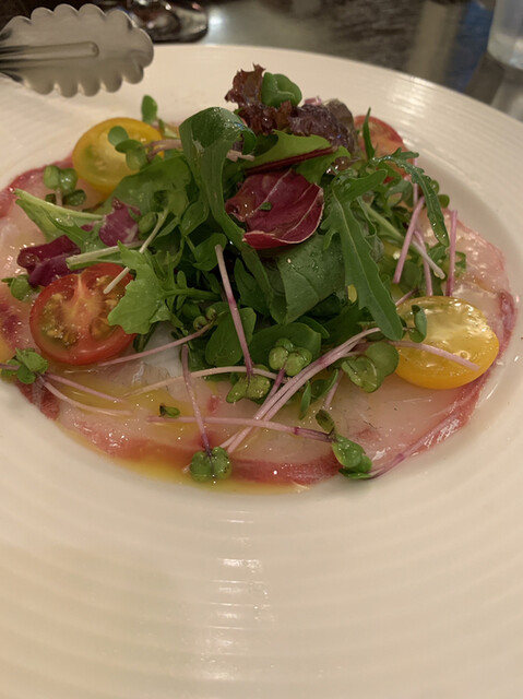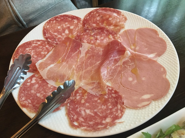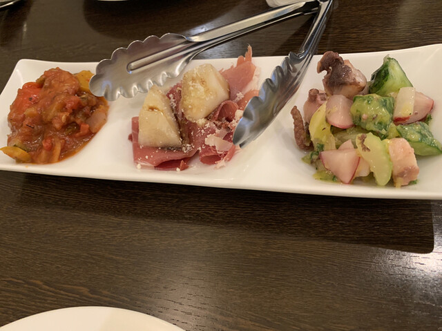 自从读了馳星周的美食散文《喰人魂》后,一直想去的意大利餐厅终于去了。7000日元的套餐开头上来了很多撒上夏季松露的火腿和生鱼片,首先就让我心情大好……。还有扇贝意大利面,酱汁浓厚,非常好吃。
