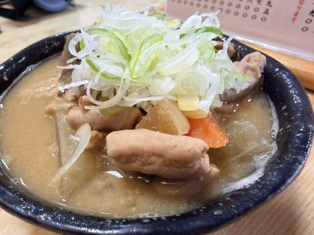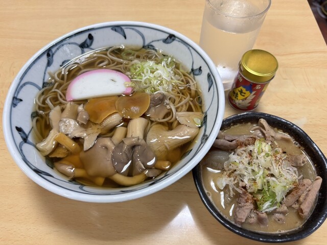 点了蘑菇荞麦面(1,250日元)和小份的内脏炖菜(600日元)。