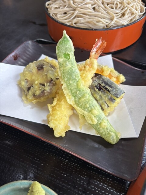 点了凉荞麦面和店内推荐的天妇罗(名字忘了)。