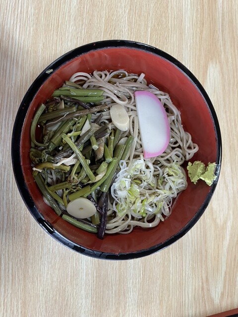 这是一家位于车站前的小店。在夏天的炎热中,轻井泽的风让人感觉非常舒适,真是太棒了!如果能在这里工作,那我真想住在这里。于是我点了山菜蕎麦。