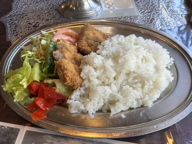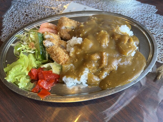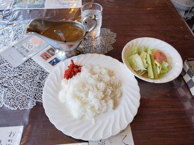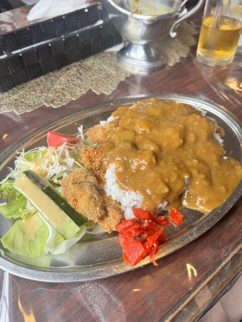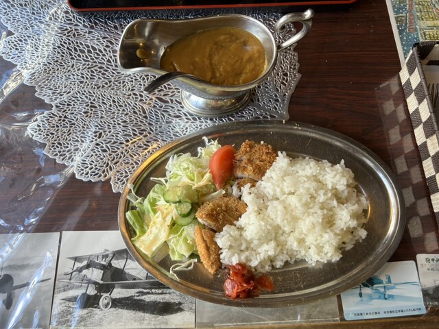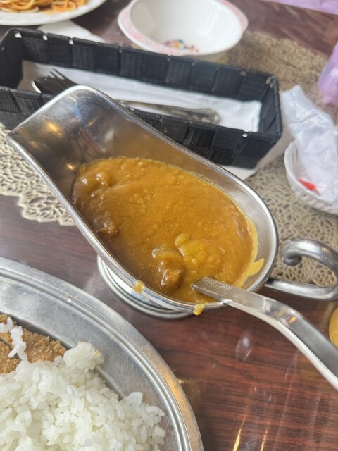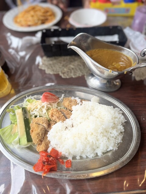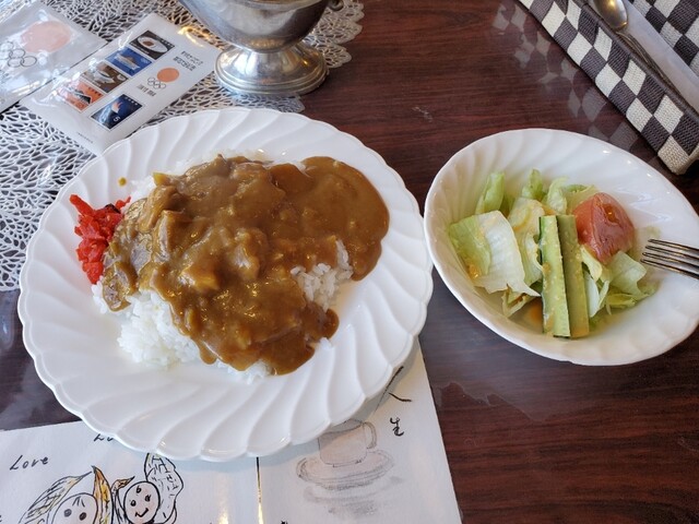 我抵达轻井泽后,计划下午进行冰壶比赛,所以提前享用了午餐。我来到了位于车站前的这家老字号结合了咖啡馆和餐厅的店铺,点了咖喱套餐,并特意选择了炸猪排咖喱套餐。
