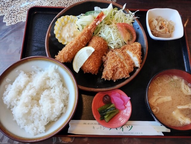 ・虾仁和里脊炸猪排定食(1600日元)