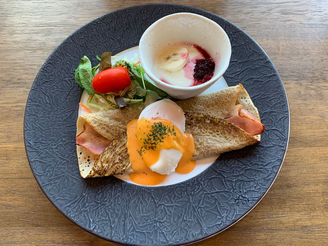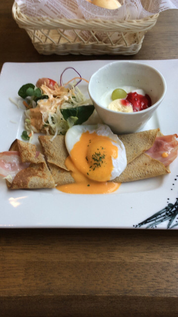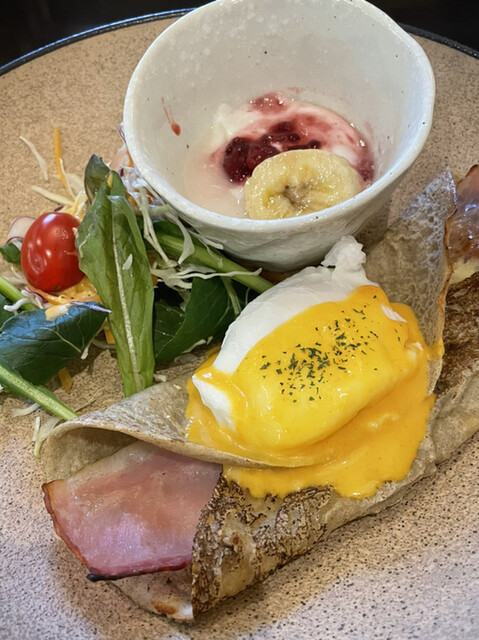 培根和鸡蛋的经典荞麦薄饼,沙拉,酸奶@菱野...(by K.たつ)