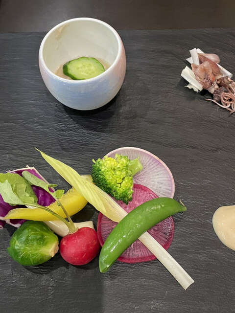 前菜(秋季蔬菜棒搭配信州味噌酱、自制芝麻豆...(by K.たつ)