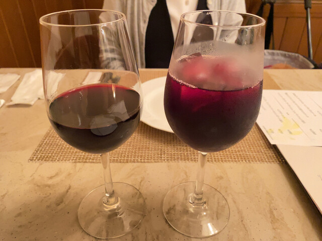 点的饮品是「葡萄酒(红:法乌恩德·斯通(酒杯))」(含税770日元)和「100%奥地利葡萄汁」(含税880日元)。葡萄汁果香浓郁,口感甜美清新,酸甜平衡得恰到好处。