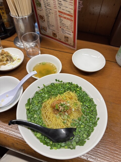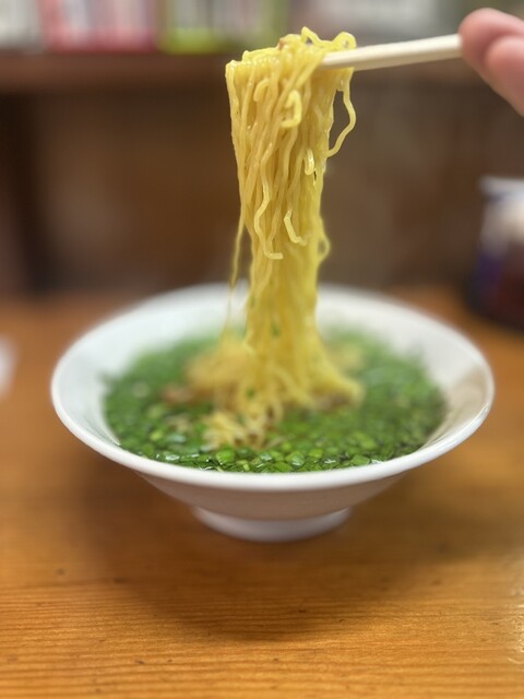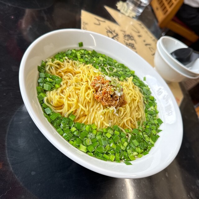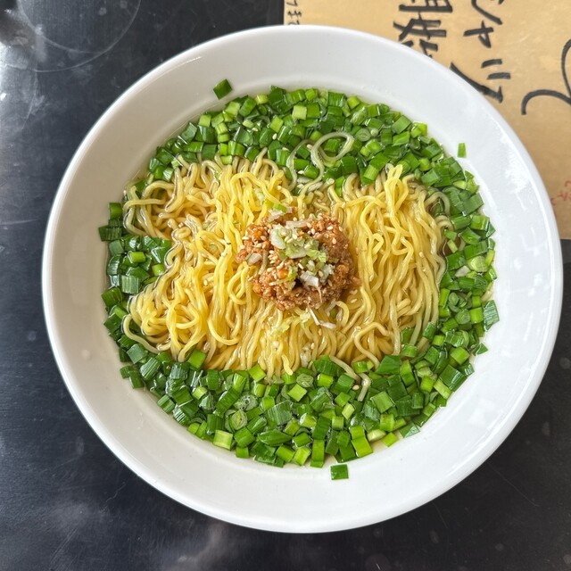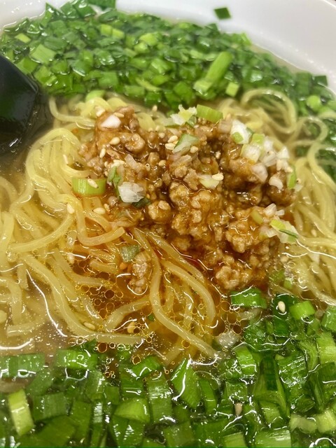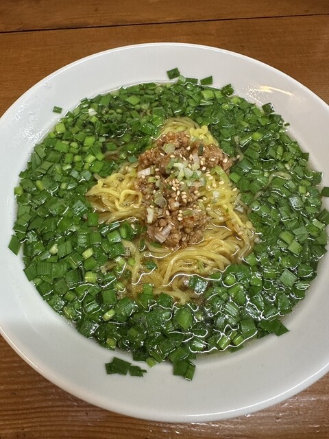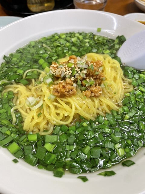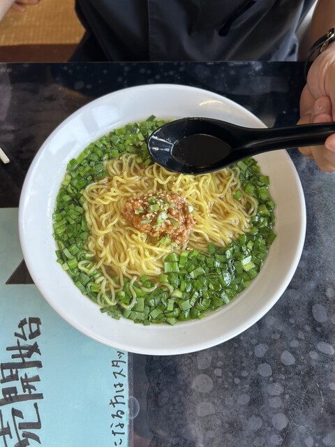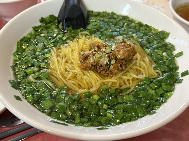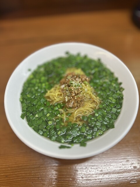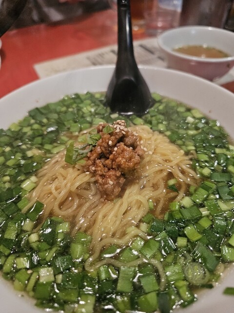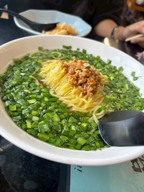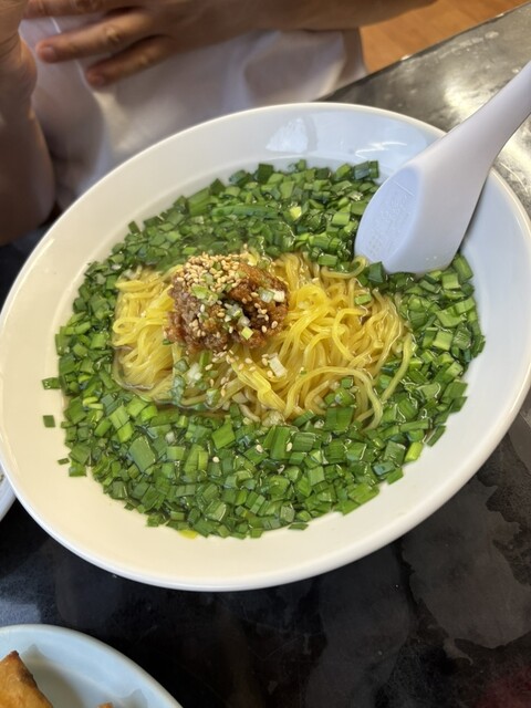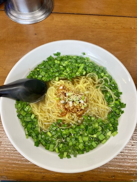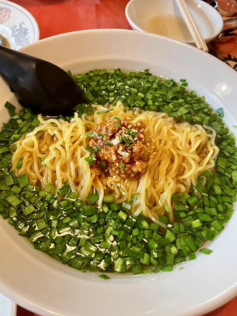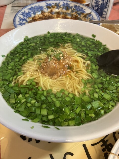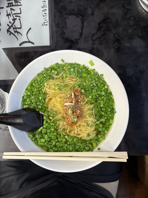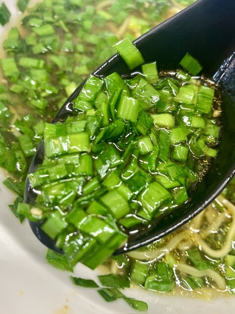大量生韭菜漂浮在上面,简直像是葱堆一样。看起来似乎很重,但吃起来却很轻盈,甚至能感受到清爽的感觉。