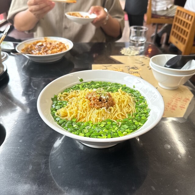 这是我第一次来,所以点了在电视上介绍的热门菜单「微辣韭菜面」和「饺子」。