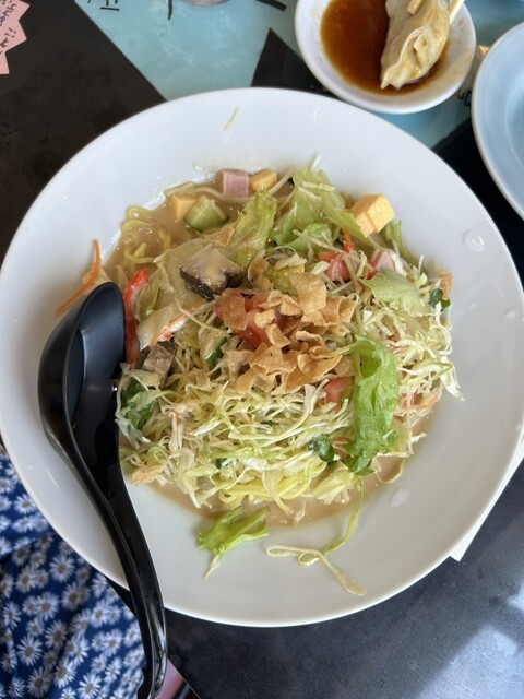 点了微辣韭菜面、饺子、大根饼和炒饭,整体味道比想象中清淡,吃起来很容易,完全没有胃胀的感觉,像喝水一样吃下去,真的很好吃!...