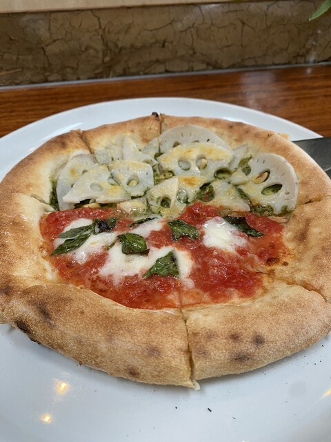 ピザの蓮根が意外に合います。シャキシャキの食感が良いです。でもやっぱりバー...