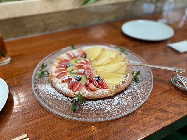 我在午餐时光顾了这家店。轻井泽给人印象就是奶酪,而奶酪又是意大利菜的代表!我之前去过代代木上原的店,对它的美味早有耳闻,这次果然没有失望。个人来说,我更喜欢普通的披萨,而不是甜点披萨(笑)。