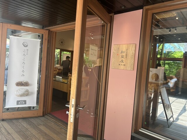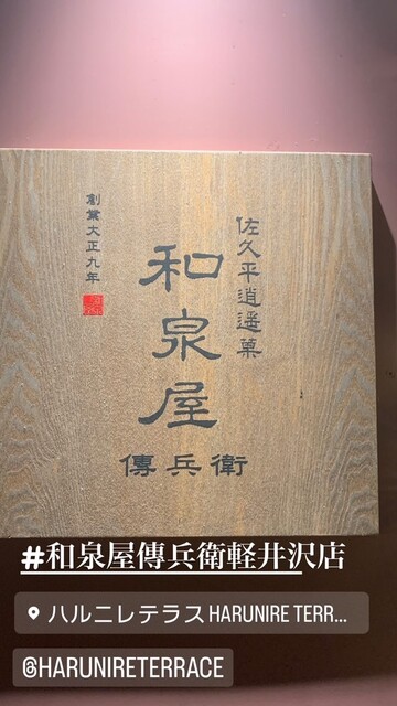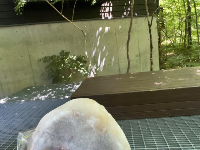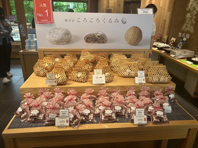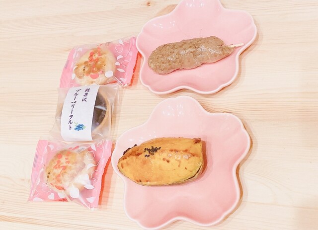 轻井泽春楡露台的土特产店。虽然整体是和菓子店,但我被奶酪蛋糕的招牌吸引,购买了一个。松软浓郁,真是美味!虽然也有五个装的,但能单个购买真的很方便。因为只能保存两天,所以更像是给自己买的吧。