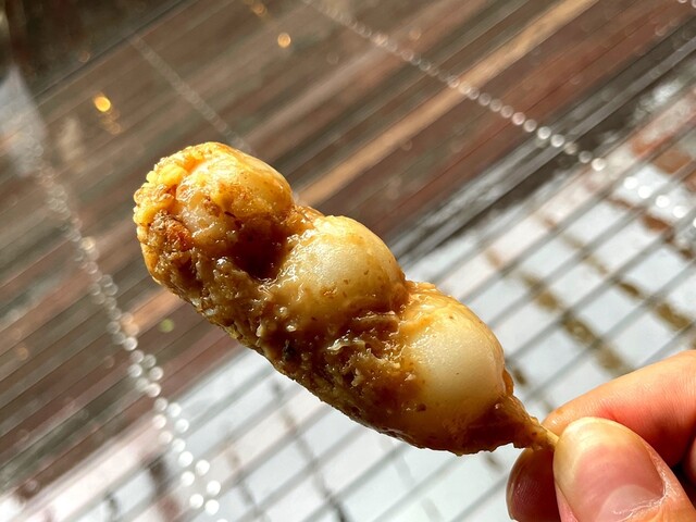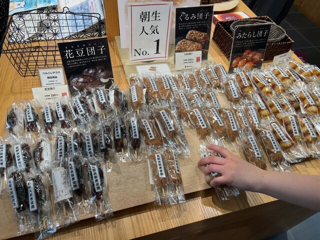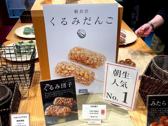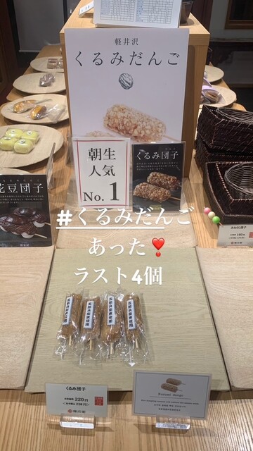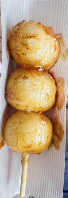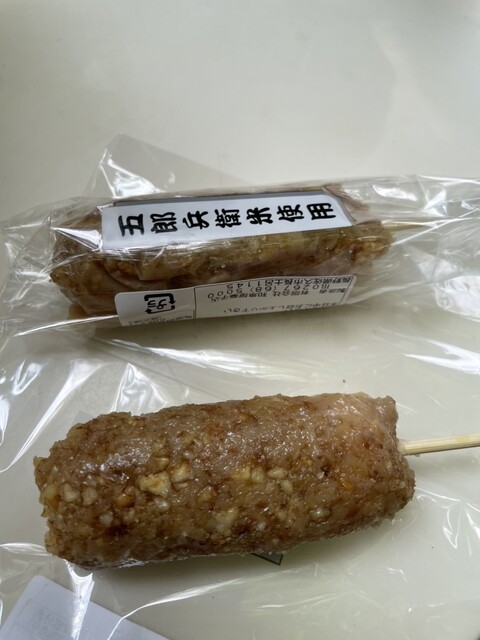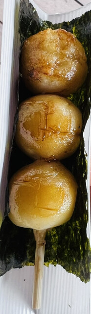 店里现场为我烤了磯部团子,口感非常Q弹,味道也很好。面团有些甜,前一天卖完了,所以我第二天特意来复仇。傍晚去的时候,店内显得有些冷清,展示柜里的商品几乎都卖光了。