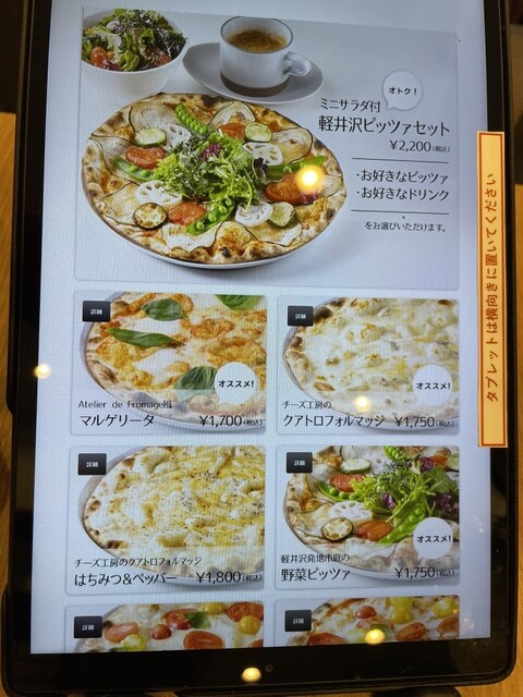 我在轻井泽最喜欢的阿托利耶·德·弗罗马日餐厅用餐。作为一家奶酪店,他们的四种奶酪披萨特别美味,奶酪的用量非常丰富。午餐时间的套餐性价比很高。虽然我更喜欢轻井泽店的氛围,但店内也很时尚且干净。真的非常美味!