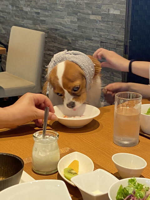 用餐时也可以带上狗狗♪(by まりるパパ)