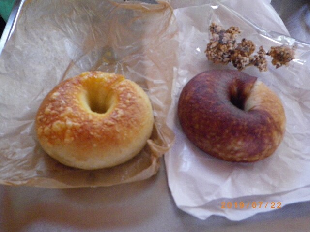 ・离店时,我带走了英式松饼(190日元)/葡萄小面包(240日元)。