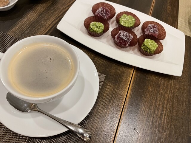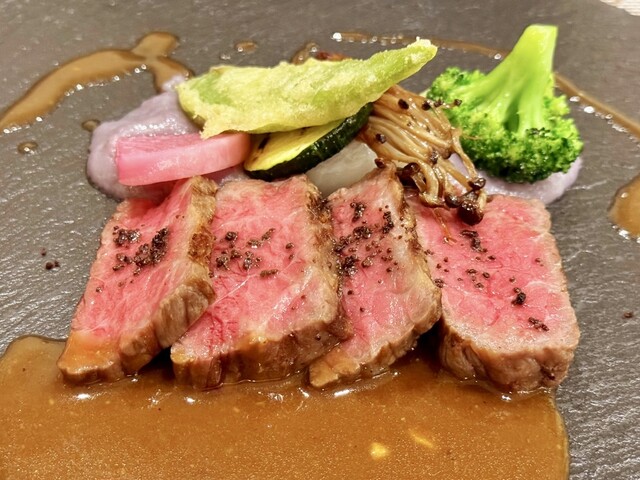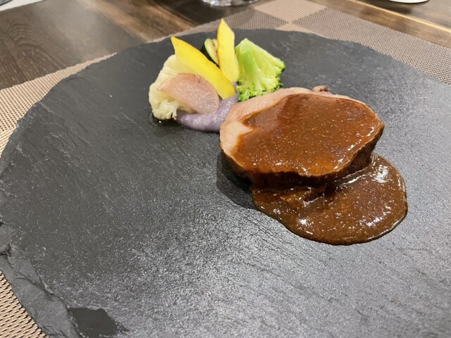 晚餐我们驱车前往位于盐泽主干道稍微偏内的一家名为「メリ・メロ」的独立法式餐厅。 冷盘:子持鲤鱼饼,配清爽番茄酱和烤甜椒泡 热盘:鸡胗和鸡腿肉的浓缩炖,配秋茄子泥,裹卡达伊夫做成的...查看详情