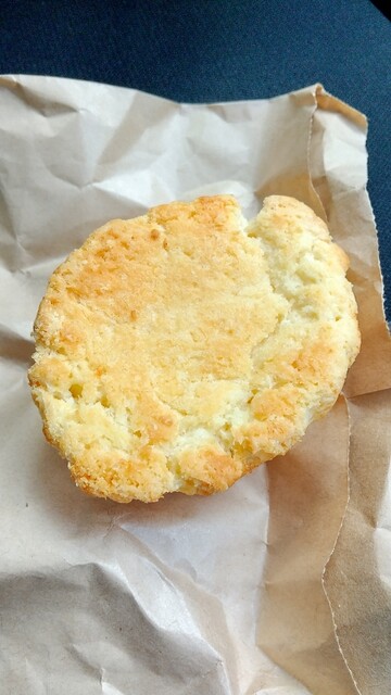 黄油的香气令人愉悦,不过水分被吸走了,吃起来有点干。尽管如此,整体味道还是不错的。这样的口感下,我觉得应该配杯咖啡。