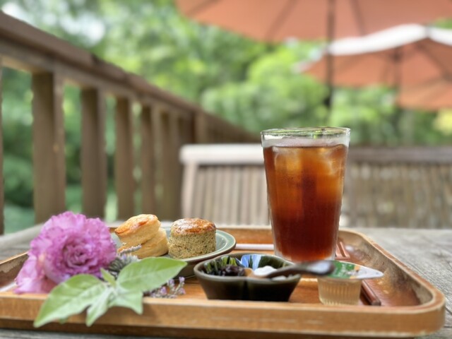 今天的轻井泽也非常拥挤(笑),所以我开车大约20分钟来到了这家店。这是一家适合在Instagram上打卡的咖啡馆。大约12点到达,因为这家店不提供午餐,所以没有等待就进店了。这里的司康饼是素食者友好的...