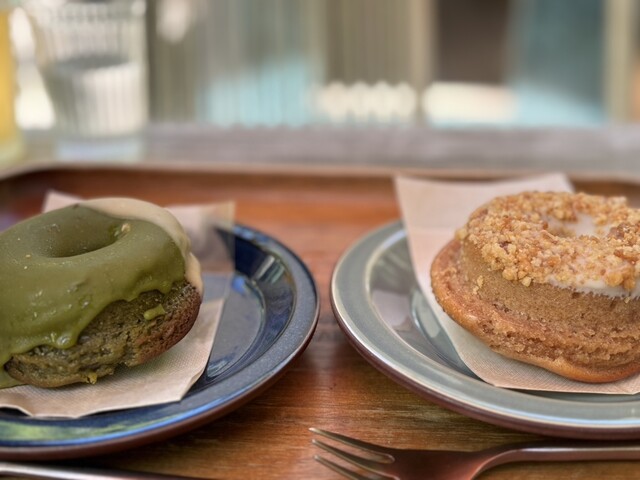 我享用了甜甜圈和咖啡拿铁。味道很好,位置也非常棒。即使在盛夏,环境也很凉爽,建筑风格也很时尚。旁边还有一家花店,价格便宜,还买了一束很不错的花带回家。之前室内空间很大,感觉还有更多的看点。