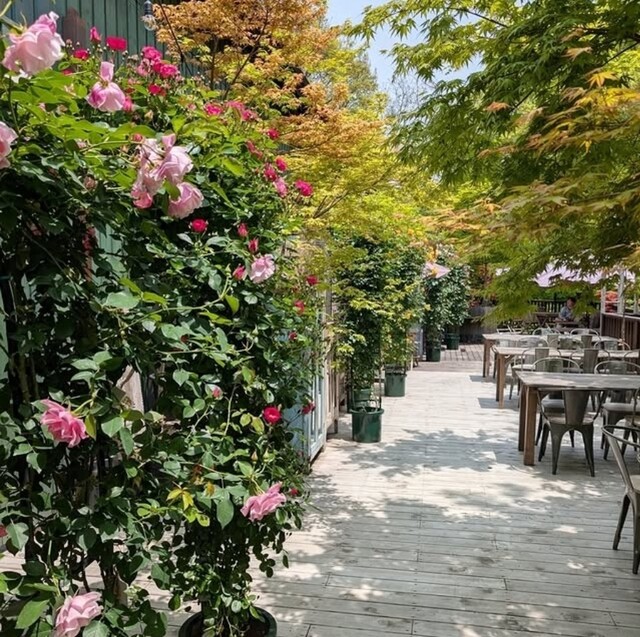 店内前面有一家花店,继续向里面走就是能够享受自然风景的美丽咖啡馆。似乎是阿尔凯花园的系...