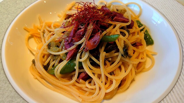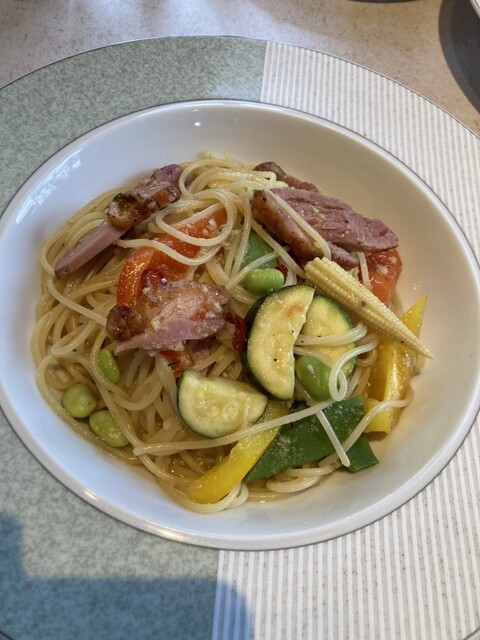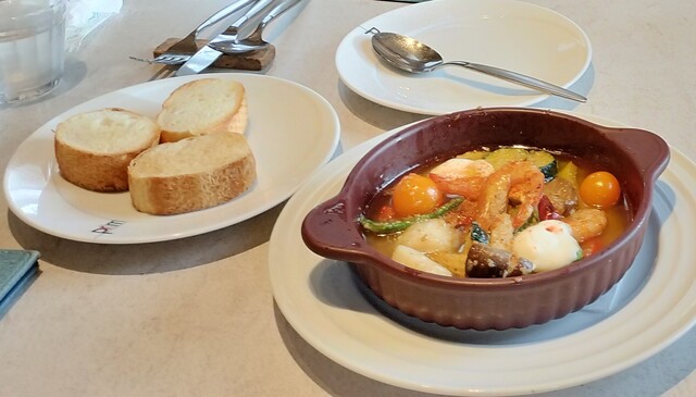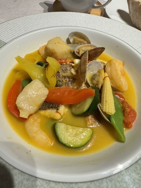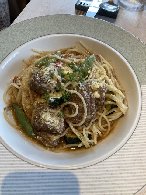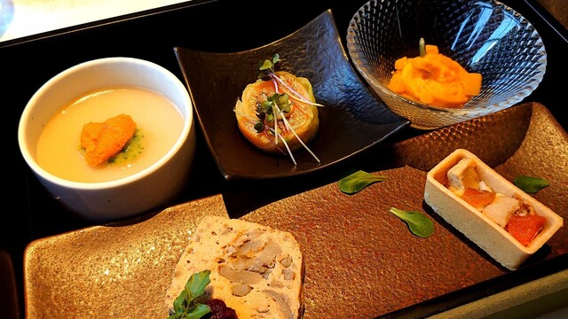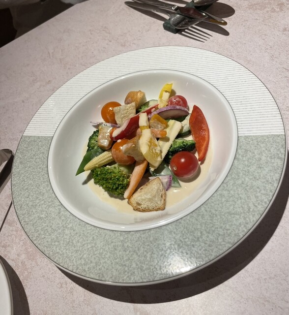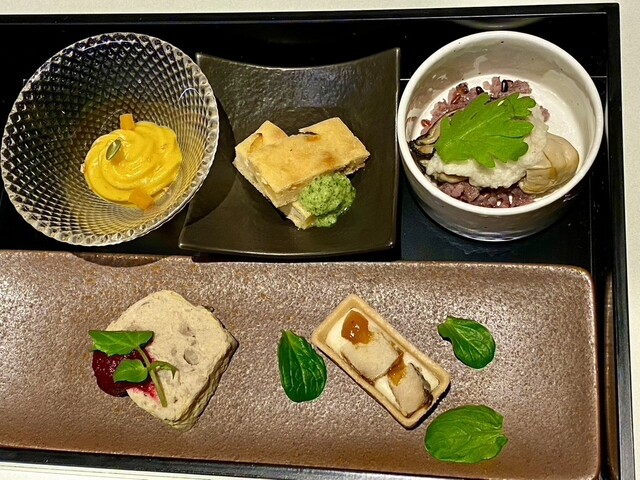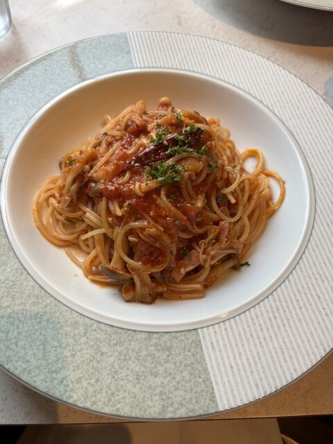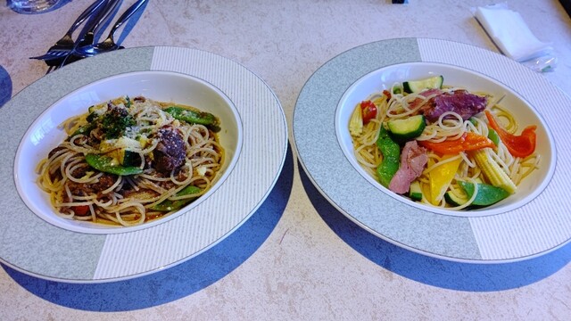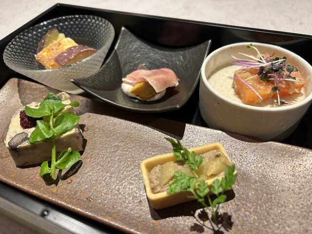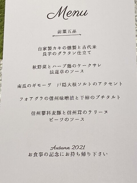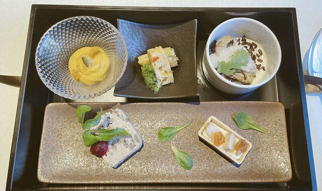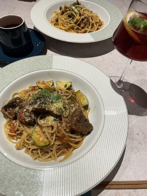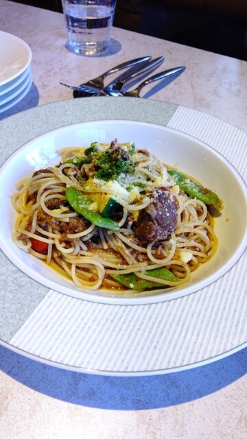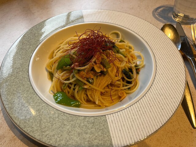 餐厅和等候区的分隔不太明显。冷前菜有五种,装在重箱里,虽然有信州的感觉,但并没有特别之处。主菜的意大利面可以选择,但过于复杂,味道并没有特别惊艳。意大利面的煮制程度很好,但前菜、意大利面、甜点和咖啡的...