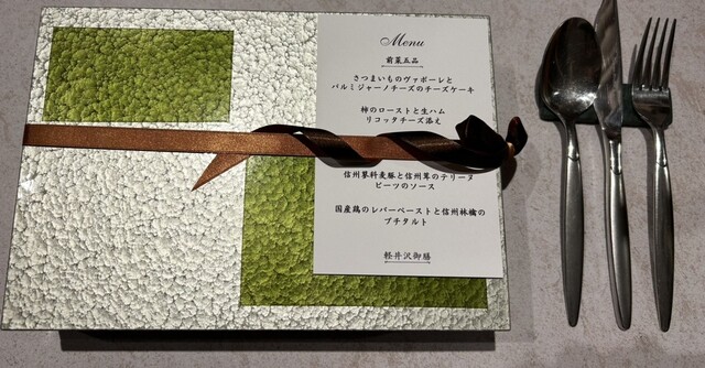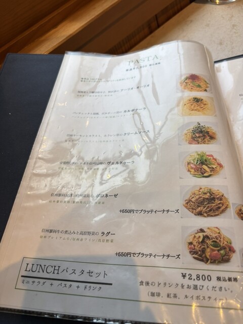 我点了包含前菜、意面、甜点和咖啡的轻井泽套餐(不含税3,200日元)。