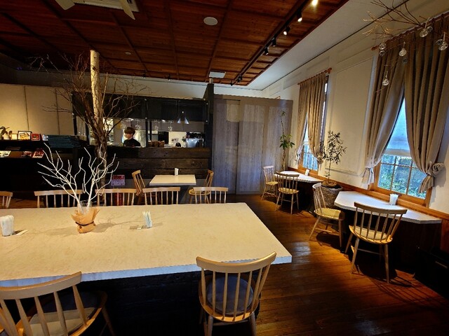 餐厅内部保留了木结构洋房的设计,营造出度假般宁静的氛围。