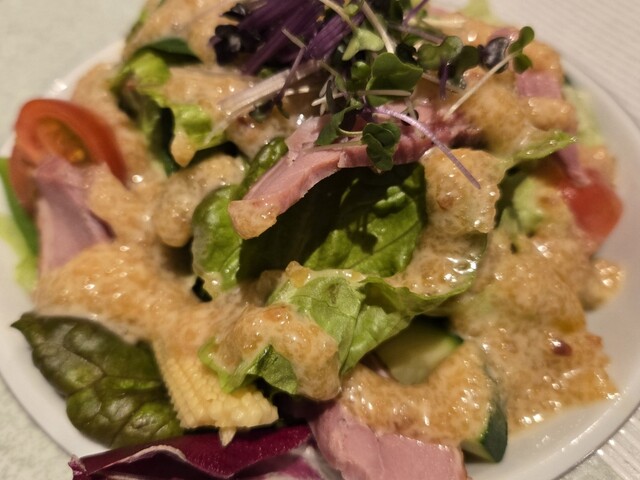 在轻井泽冬季节庆当天,我去了车站内开的意大利餐厅。这里虽然有素食菜单,但我选择了普通的意大利菜。点了国产牛肉菲力、卡洛扎和葡萄酒,味道非常好。可以慢慢享用美食,葡萄酒也有¥2000(店里提供三种选择)...