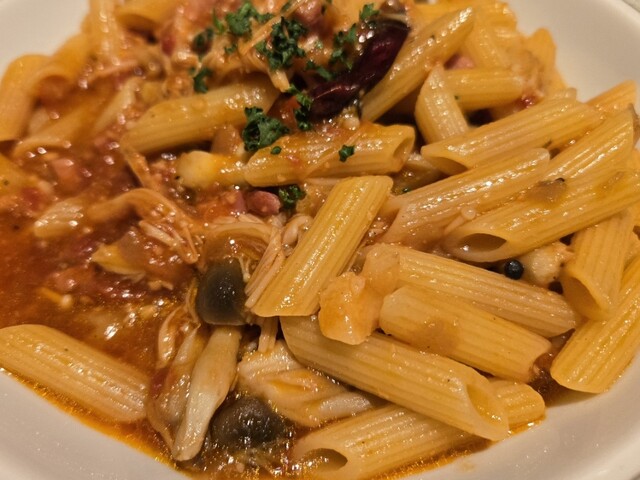 我把意面换成了稍微辣一点的阿拉比亚意面,味道非常好。