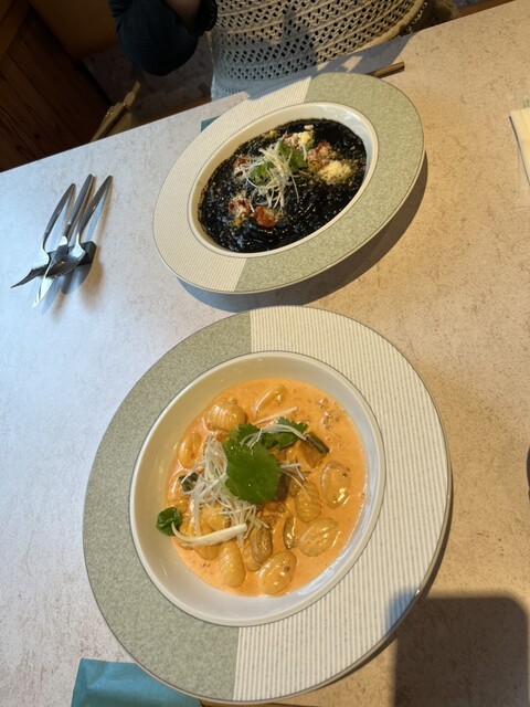 我点了墨鱼汁烩饭和海胆南瓜意大利饺子。海胆的量让我感到惊讶,真是不可思议。虽然在雨中前来,但店员的服务非常好。店铺位置靠近车站,非常方便,我还想再来一次。