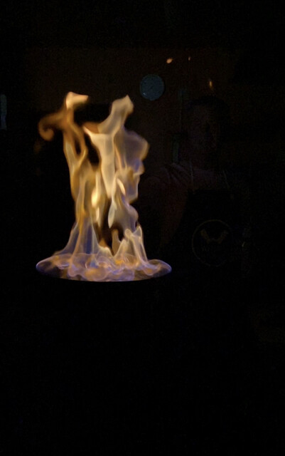 香蕉火焰甜点可以在厨房观看制作过程。(by ぴすたちーお)