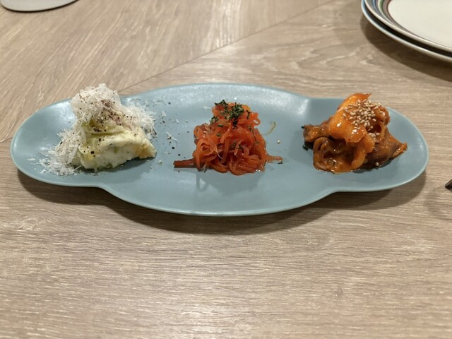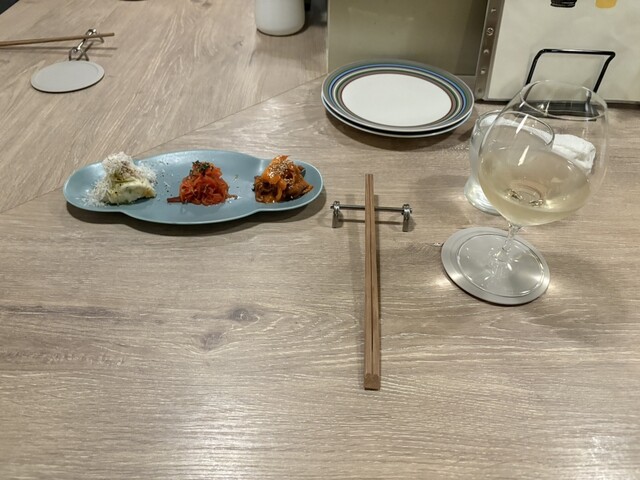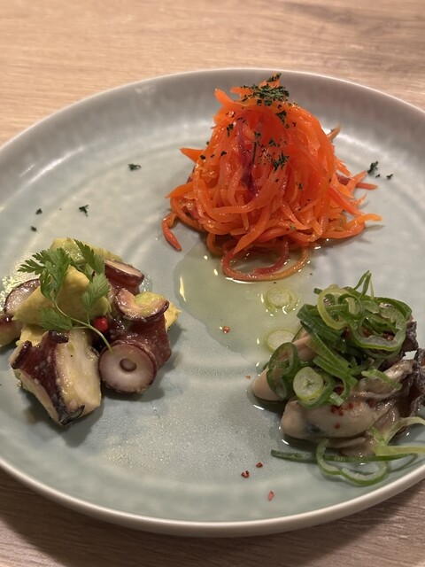 这次我没有点南厨师的推荐套餐,而是在吧台品尝了单点菜肴。先从楼下的轻井泽Q的新款黑色手工啤酒和前菜的胡萝卜拉佩、生蚝油渍、章鱼腌制开始。然后是凤尾鱼和甜洋葱腌制、超粗自制香肠、牛里脊炸肉夹三明治、托斯...
