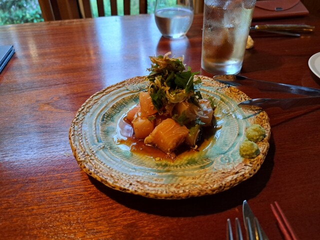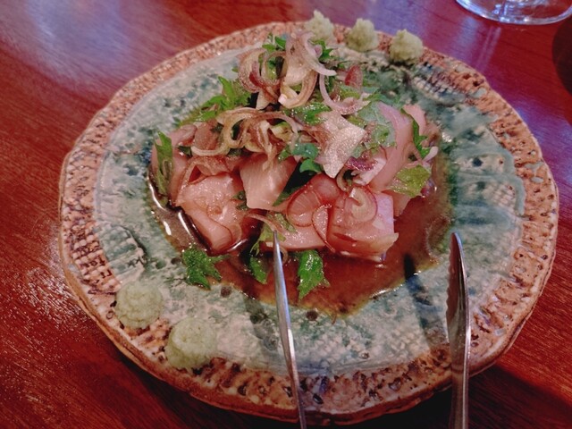 通过朋友的介绍,我们在星期六17:00时与朋友一同前往,共5人。特别定制了每人8800日元的套餐。我们还品尝了推荐的四款葡萄酒,非常满意。尤其是海鲜类菜肴丰富,鱿鱼的香蒜酱拌得非常美味。谢谢!