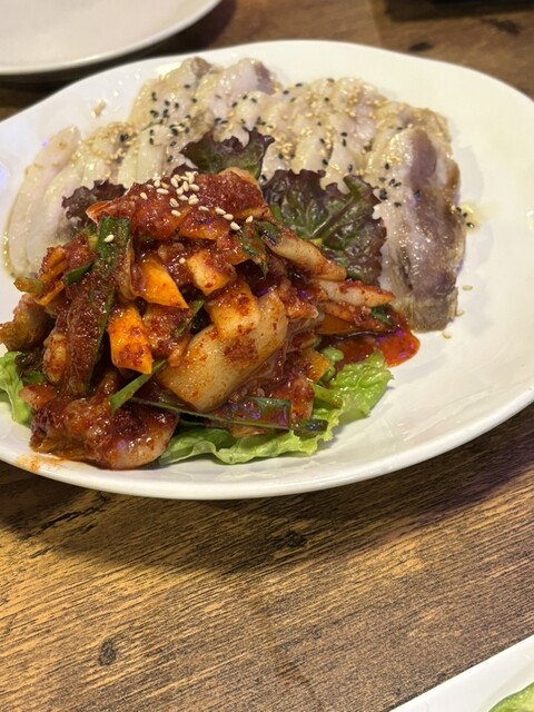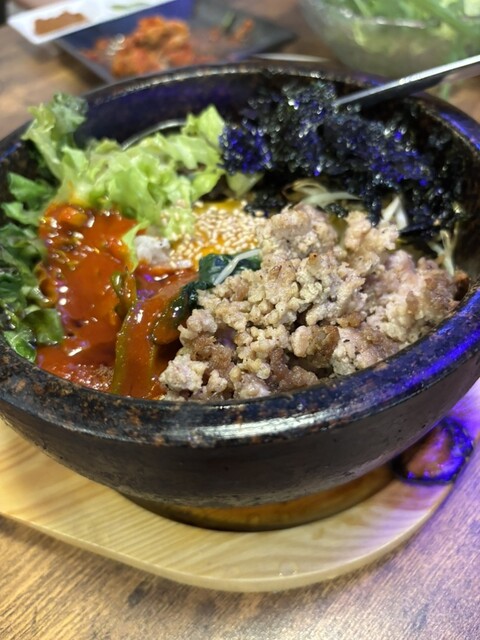 因为是第二家店,我们点了泡菜拼盘、包肉和石锅拌饭,大家一起分享。味道还不错...