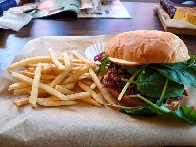 这是一家可以品尝到15小时熏制的猪肉撕肉汉堡,它的多汁与烧烤酱和蓝纹奶酪的浓郁风味交融,还有与婴儿叶菜、清爽的长野产苹果片和枫糖浆的甜味搭配的优雅口感,令您体验到舒适的德克萨斯风格汉堡。