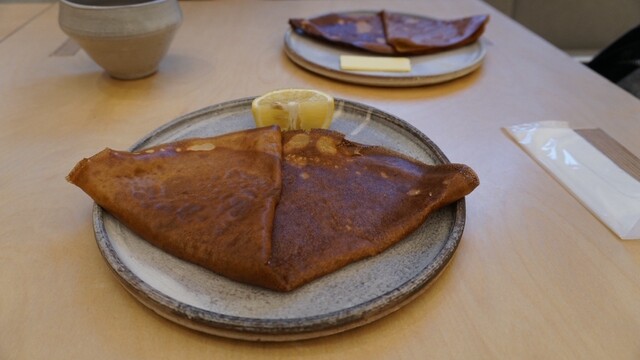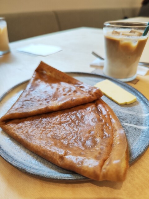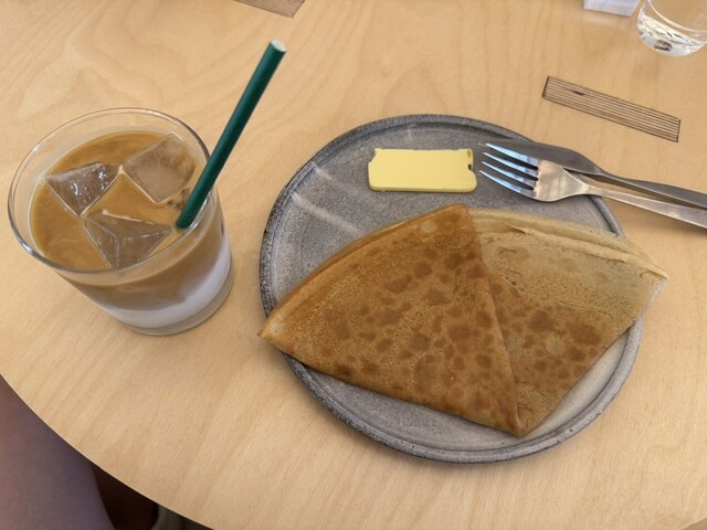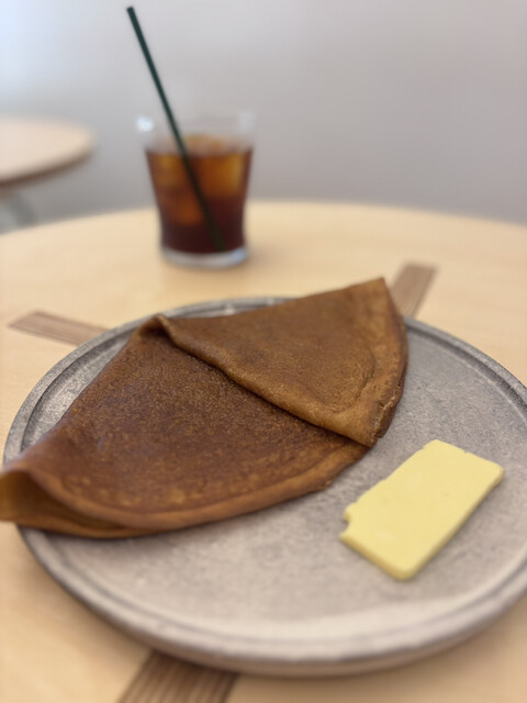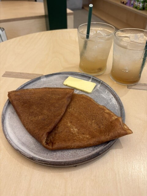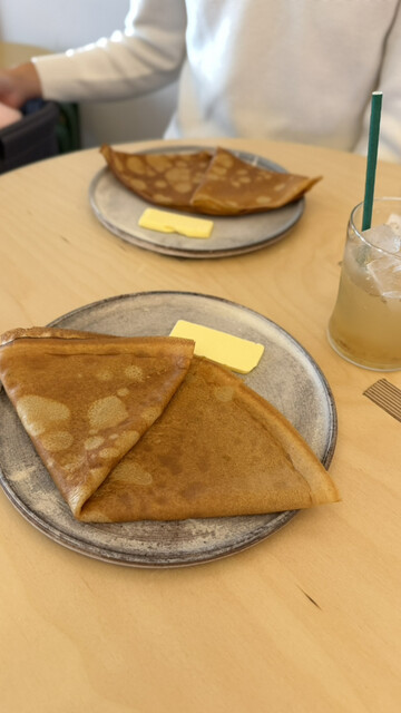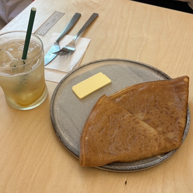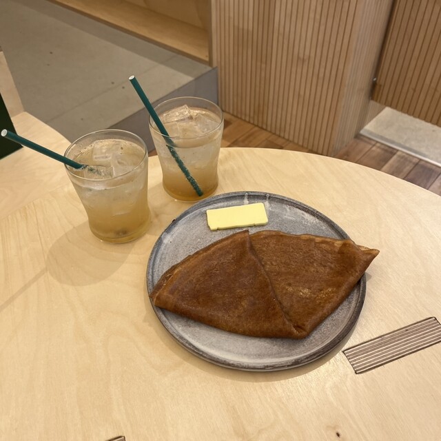 这是一家位于轻井泽哈鲁尼雷露台内的时尚可丽饼咖啡馆。我点了糖黄油可丽饼和自制柠檬水。糖黄油可丽饼的面团非常有嚼劲,融化的黄油让它变得非常美味!自制的柠檬水中加入了肉桂,味道非常适合夏天。