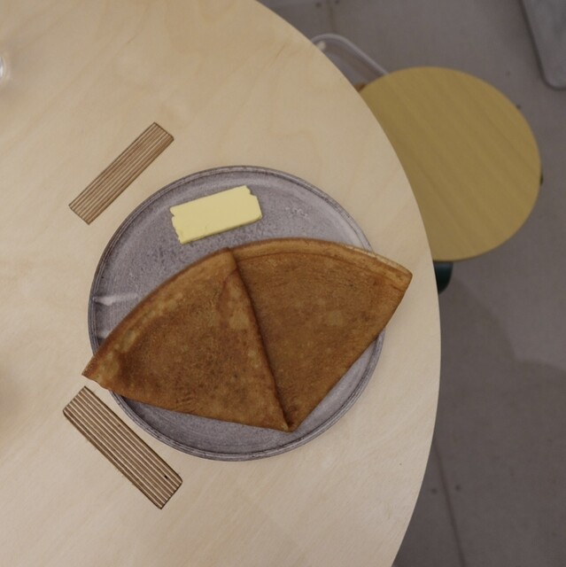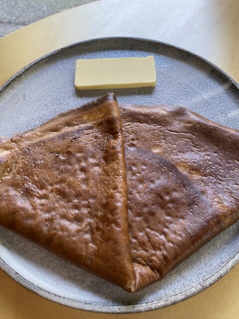 盘子边上放着的固体黄油,是不融化的,和饼一起吃是推荐的吃法。
