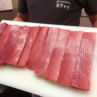 目前,我们提供新鲜美味的鱼类,欢迎品尝刺身、烤鱼和炖鱼!