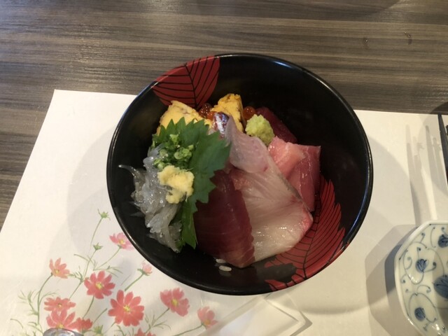 点了海鲜丼,厚切的鲔鱼、鲣鱼、鯛鱼,还有生...