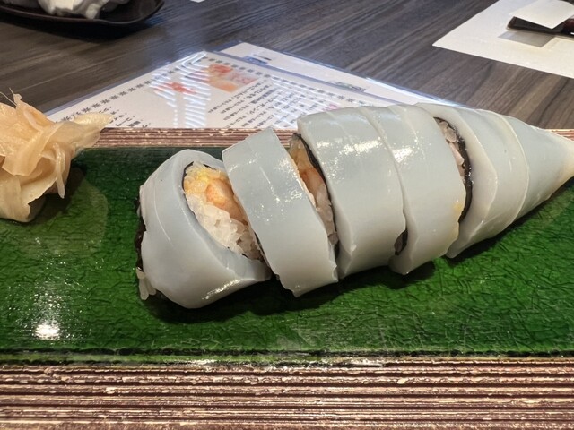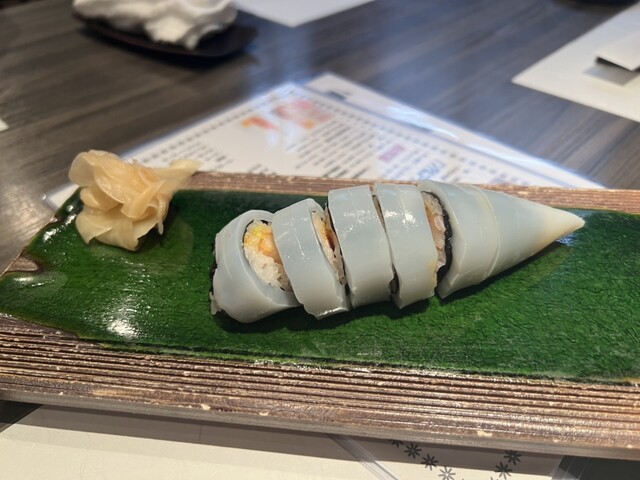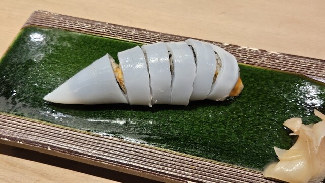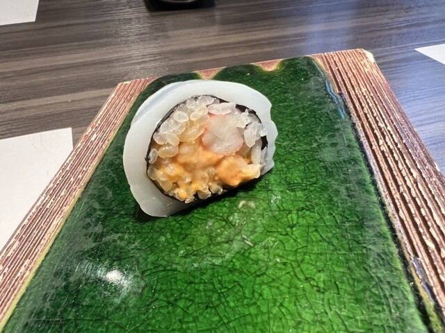 虽然我做好了大份量的心理准备,但实际上它的大小和我的手差不多。柔软的鱿鱼里包裹着滑嫩的海胆,简直让人想吃个不停,甚...