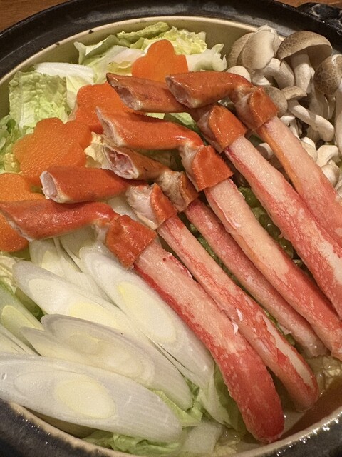 今夜尽情享受奢华的蟹宴品尝经典的蟹刺身和蟹锅,感受蟹肉的原汁原味通过蟹制成的精致菜肴带来惊喜与发现再搭配一杯日本酒,细细品味请享受这样一个美好的夜晚蟹的美味因产地和季节而异。为了让您品尝到优质蟹的鲜美,我们在采购上非常讲究。我们还提供适合宴会的畅饮套餐,店内设有多个完全独立的包间。...