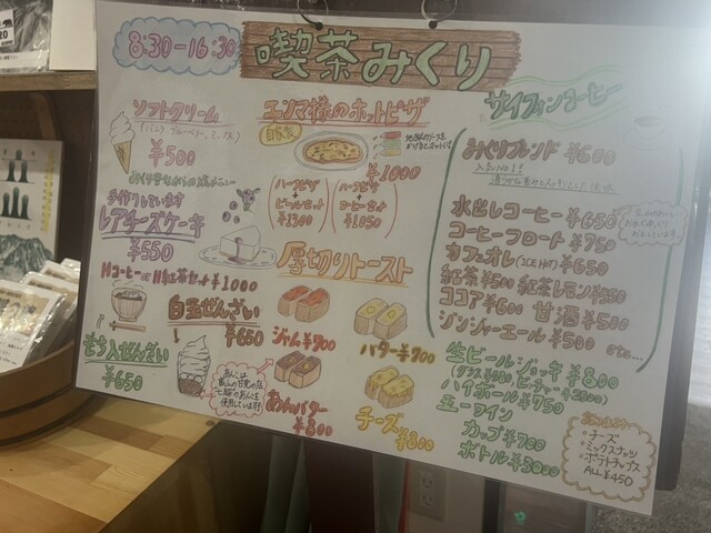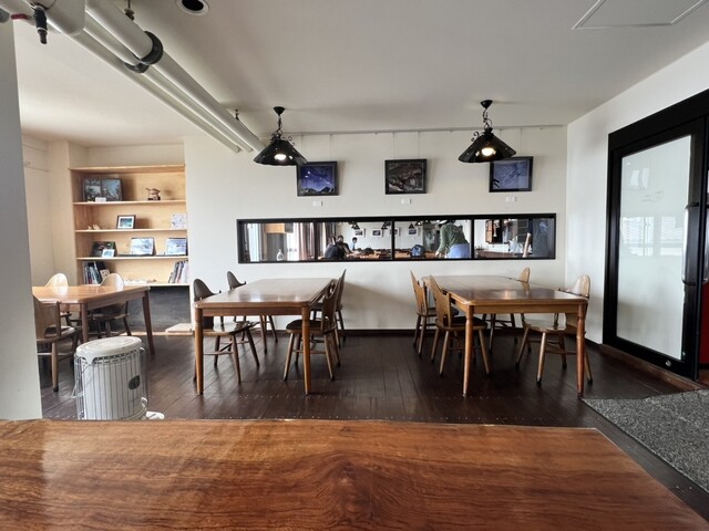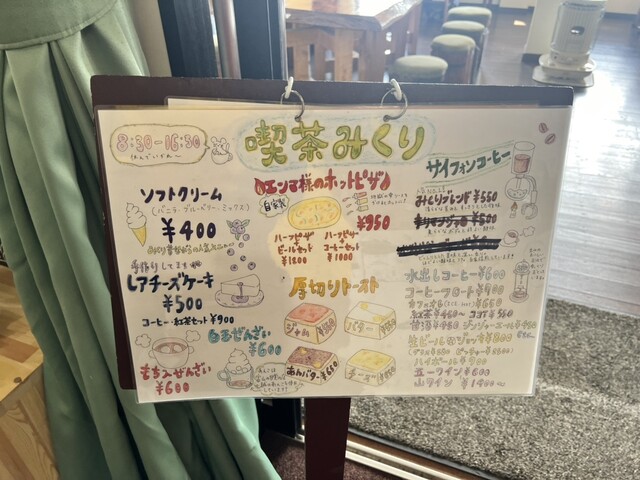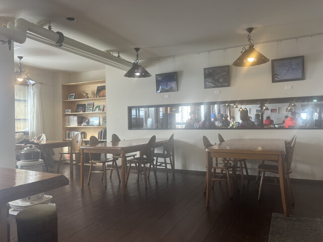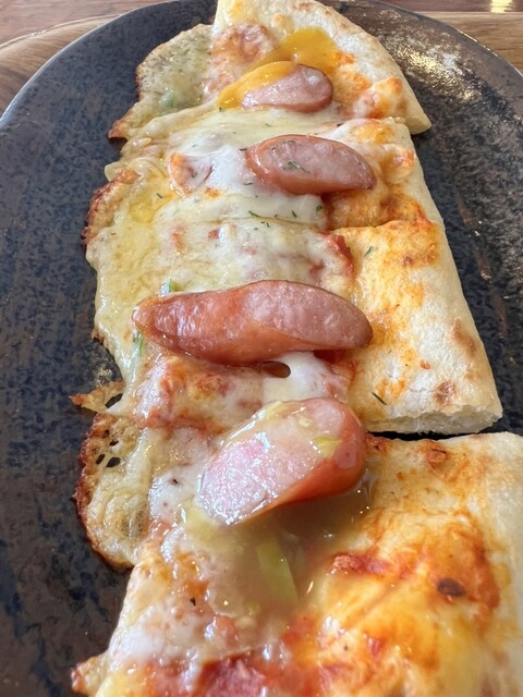 从奥大日岳下山后,我在みくり池温泉冲洗了汗水,简单吃了午餐。虽然食堂的面条和盖饭也很吸引人,但这次我特意前来喫茶みくり,想尝试之前一直在关注的“阎魔大人的热披萨”!这家咖啡店可以在户外用餐,店内则现代化装修,非常适合放松休息。