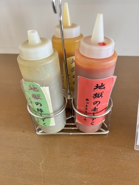 地狱的红滴是热辣椒酱,非常辛辣,所以我选择尝试了绿色的哈拉佩尼奥酱和黄色的咖喱酱。