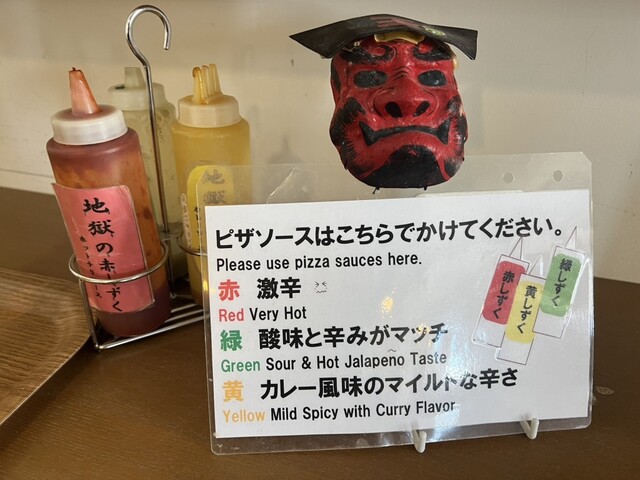 个人而言,我可能更喜欢咖喱酱。半份披萨的话可能无法完全体验三种酱料,推荐尝试全尺寸的哦。