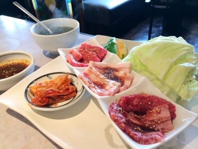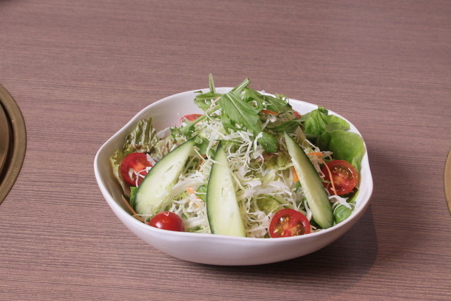 焼肉定食:サラダ、ライス、ワカメスープ、キムチ付 (by お店)