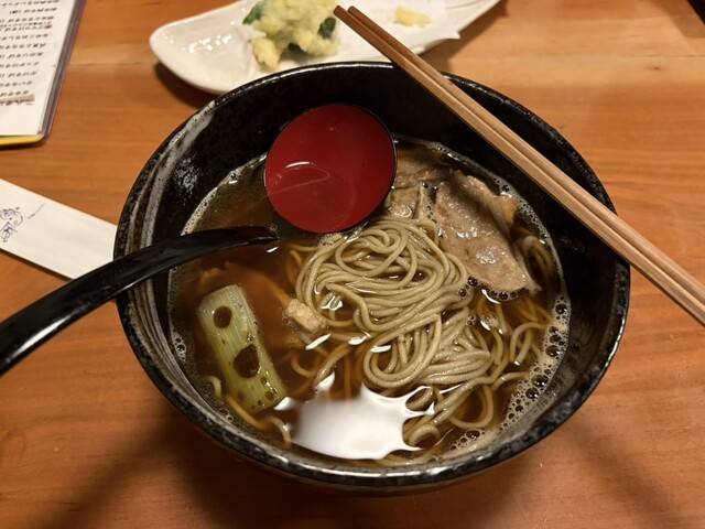 【一言】蕎麦って美味いですよね。松山で蕎麦好きになってから紹介してもらった癒庵さん。深夜までやっていてラーメンじゃ重いかな、って時に最高のお店です。テーブル席やカウンター席もあるので居酒屋利用や最後の〆利用に最適!お蕎麦の種類も豊富でした。今回は鴨南蛮...