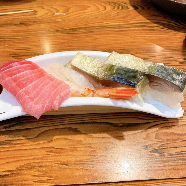 握りはトロ、海老、鯖寿司です。