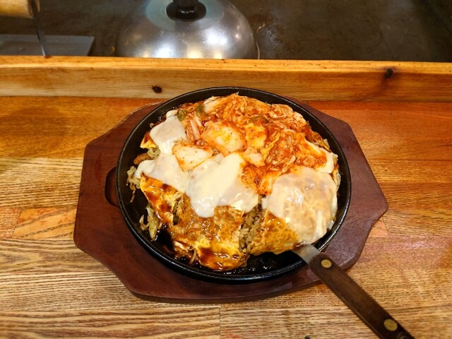 松山で、こだわりの美味しい広島風お好み焼きや、鉄板焼きが楽しめるお店。カウンター前の大きな鉄板で、熟練の大将が焼きあげるお好み焼きは絶品物。サイズもSMLWと選べて、瀬戸内の魚介類や、牛肉などを150円からトッピングできます。定番メニュー以外に、たこやきや、そばめしなど新メニュー豊富です。学生さんから、ご年配の方々まで幅広い層に支持されております。夕方以降はサラリーマンにうれしい晩酌セット(お好み...焼き+生ビールなど)もご用意してます。テイクアウトOKです。