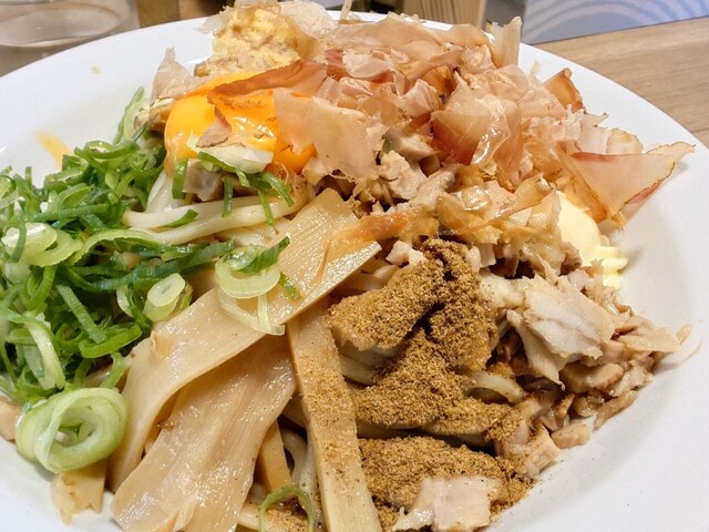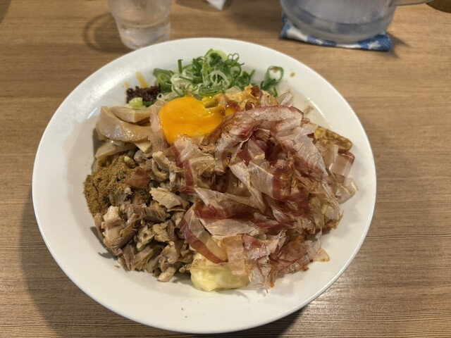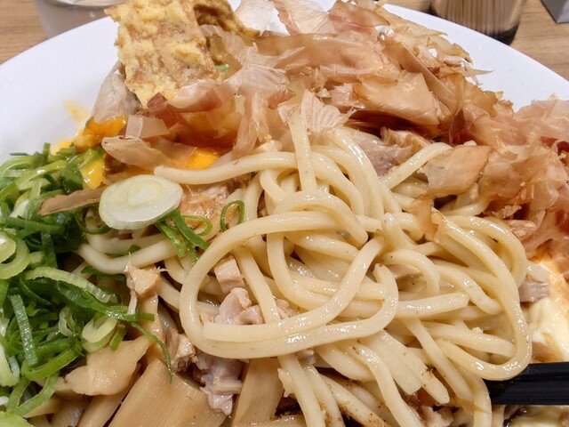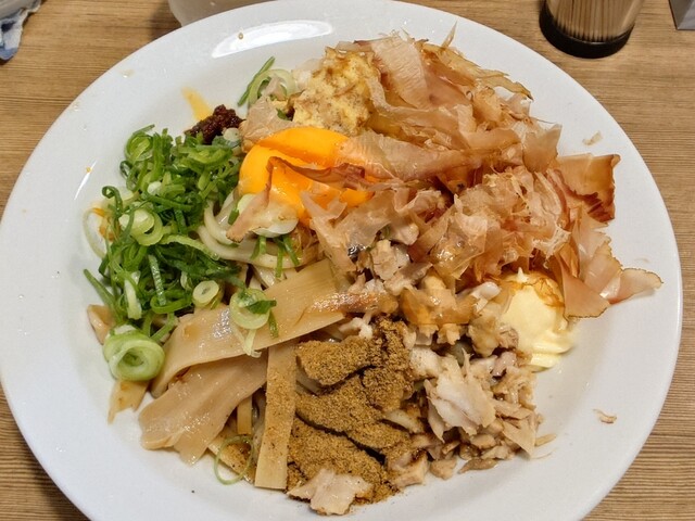【まぜそば 300g】¥1,000 ニンニク カラメ 昼麺2軒目、松山の源氏車に伺いました。 前々から何人かにお勧めされていて、やっと来ることが出来ました。つけ麺メ... 詳細を見る