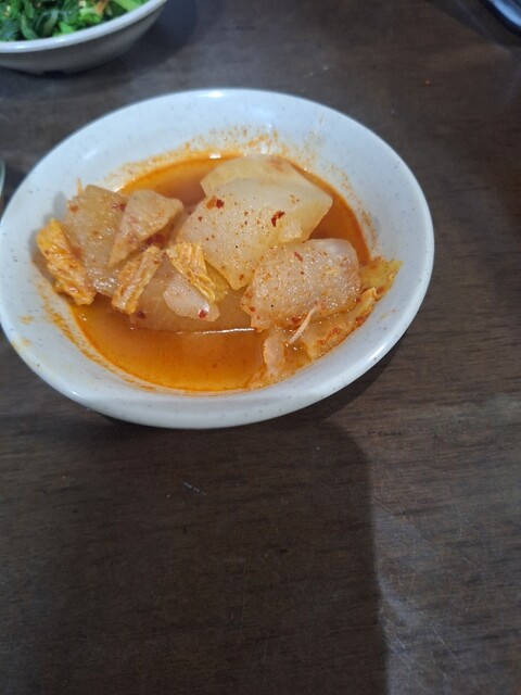 キムチ、大根とキャベツのキムチでそんなに辛さはなくアッサリ味わいました。